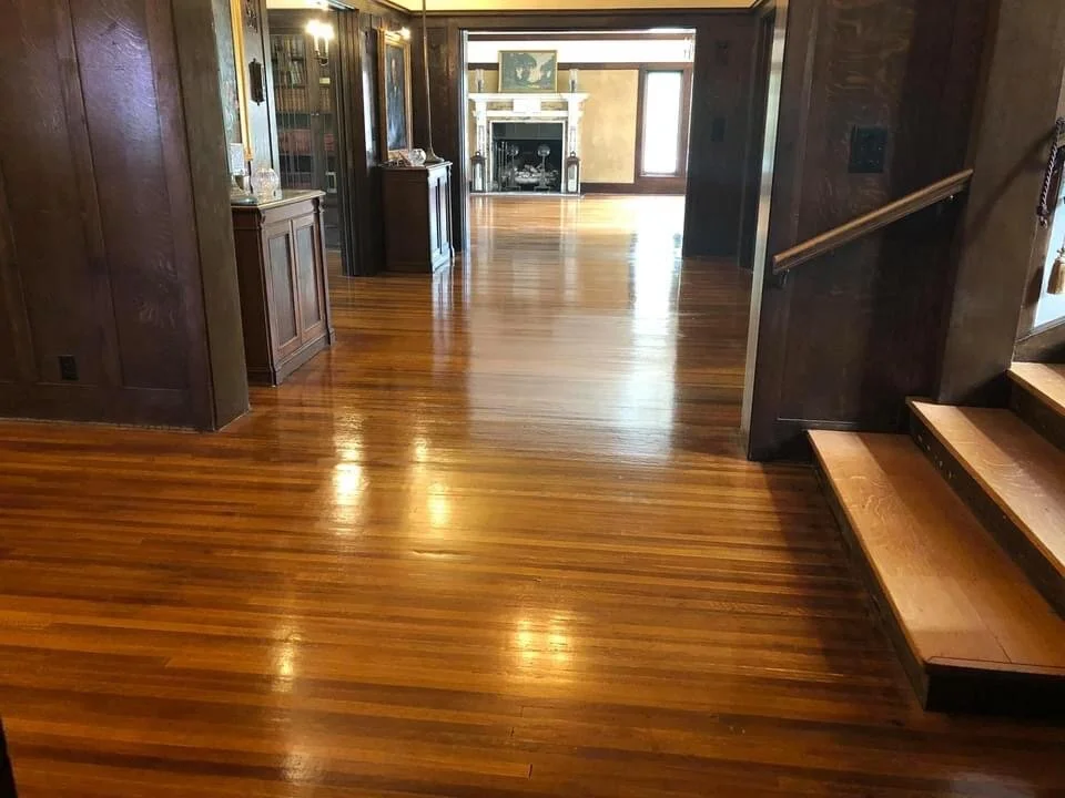 The original wood floors were refinished and sealed. They’re beautiful and ready for visitors.